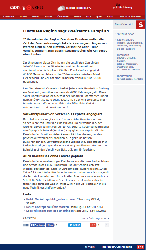 Die derzeitige Situation des öffentlichen Verkehrs, speziell die Anbindung der Mikrokorridore der einzelnen Gemeinden an die Hauptverkehrslinien 140 (Salzburg - Mondsee) und 150 (Salzburg - Bad Ischl) ist unzureichend. Die Erreichbarkeit von Beruf und Freizeit mit öffentlichen Verkehrsmitteln ist teilweise wegen zu langer Wartezeiten und zu großen Intervallen der Busfahrten unzumutbar. Mit der Entwicklung eines Masterplans soll den Bewohnern und Besuchern der Region Fuschlseeregion - Mondseeland (FUMO) zukünftig eine attraktive und umweltschonende Mobilität dargestellt werden, um mit weniger motorisiertem Individualverkehr die täglichen Berufs- und Ausbildungsorte sowie die Freizeitziele attraktiv und kostengünstig erreichen zu können. Beispiele für solche Systeme sind Rufbusse, die Schaffung einer Solarroute (Carsharing, E-Mobility, E-Bikes…), autonomes Fahren und die optimale Vernetzung/Verbesserung bereits bestehender Systeme.
