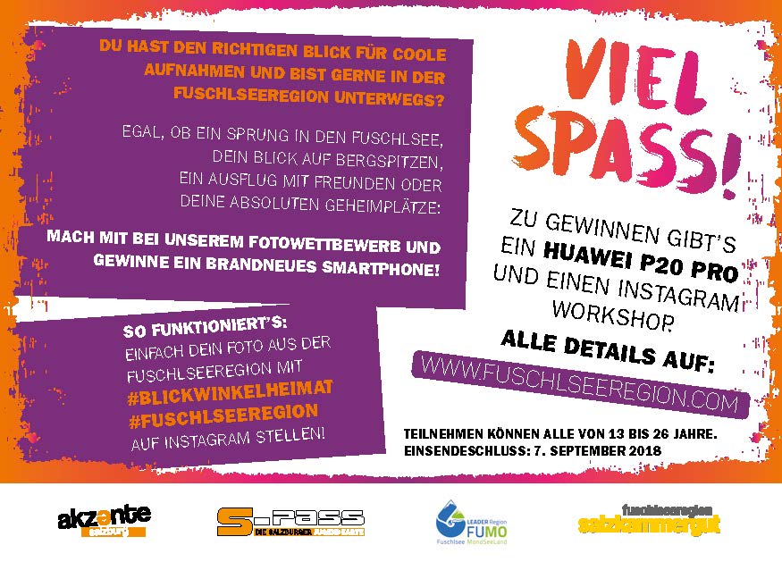 - Der Jugendwettbewerb und Instagram-Workshop wurden in Zusammenarbeit von Akzente Salzburg, dem Fuschlsee Tourismus und der LEADER-Region FUMO ausgeführt