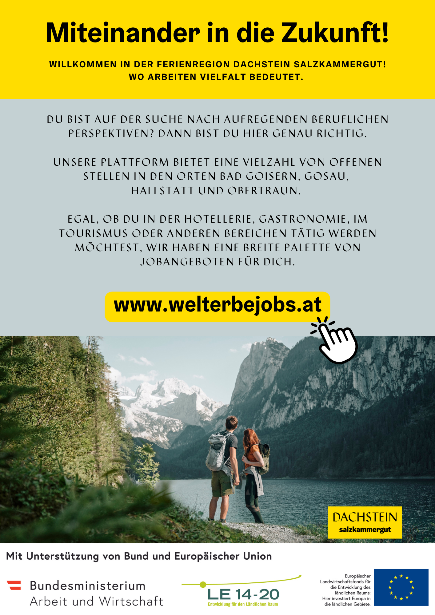 Ziel des Projekts ist es, die Attraktivität der Arbeit im Tourismus stärker ins Bewusstsein der Bevölkerung zu rücken und eine Brücke zwischen Arbeitgeber:innen und potenziellen Mitarbeiterinnen und Mitarbeitern zu schlagen. Ein wichtiger Bestandteil des Projekts ist die eigens gegründete Jobplattform www.welterbejobs.at, auf der laufend offene Stellen aus Bad Goisern, Gosau, Hallstatt und Obertraun eingewartet werden. Diese Plattform dient als zentrale Anlaufstelle für Arbeitssuchende, die nach spannenden und vielfältigen Karrieremöglichkeiten in der Region suchen, und bietet gleichzeitig den Unternehmen eine professionelle Möglichkeit, gezielt potenzielle Mitarbeiterinnen und Mitarbeiter anzusprechen.
